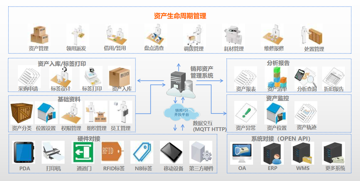 包括纸质档案、实物档案的管理,由于档案类资产具有数量多,出入频繁的特点,导致查找档案的工作量变得非常繁重。针对档案类资产,销邦选用了 UHF RFID 不干胶标签,将标签粘贴于每个档案盒上,同时运用 RFID 档案柜和 RFID 通道门,实现精准快速查找档案的存储位置,自动记录档案出入信息。