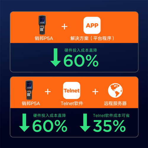 销邦P5A沿袭传统进口设备的全键操作习惯,广泛应用于工业制造、大型仓储、零售商超及交通运输等领域,以实践证明实力,助力企业信息化建设效能提升。