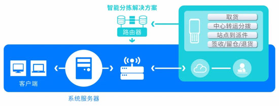 1、终端移动化管理、提高了分拣中心的信息化管理水平;