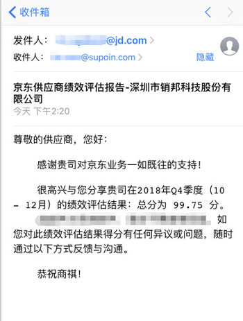 2018第四季度,销邦联手京东,助力仓库完成出色的分拣流程,打造了第一时间送货的快递嘉赞,提升信息化及管理可控化程度,加快供应链速度,为京东创造了智能价值。