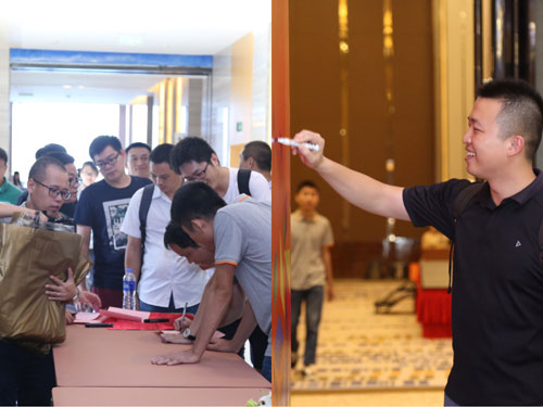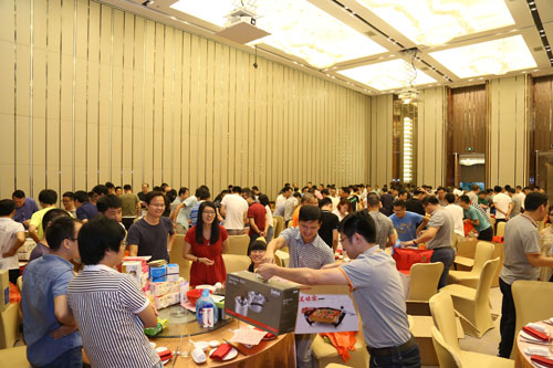 下午2点,与会嘉宾陆续来到现场,签到台前络绎不绝。会议开场,销邦技术副总裁张晓京先生为大家深度剖析了销邦的产品理念,现场掌声阵阵,销邦2017新品发布暨中秋博饼联欢正式拉开帷幕。