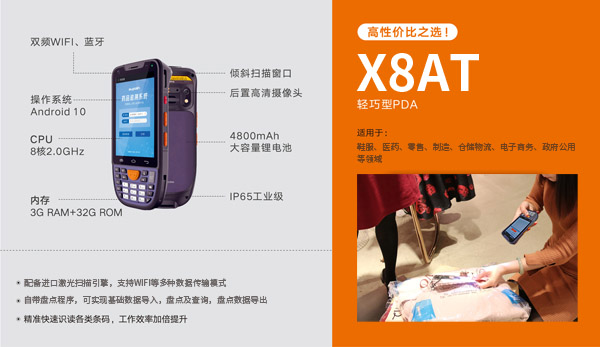 高效性:PDA盘点机采用条形码扫描技术,能够快速准确地扫描商品信息,提高盘点和管理效率。