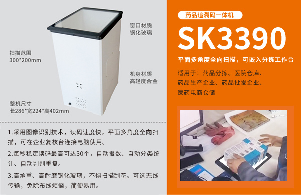 推荐配置:SK3390智能批扫平台,适合总部仓库给旗下药店配药使用,预算6000-7000元。