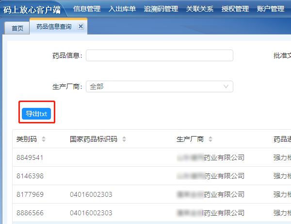 1、登录“码上放心”平台,在“信息管理”模块下载“往来单位”和“药品信息”。