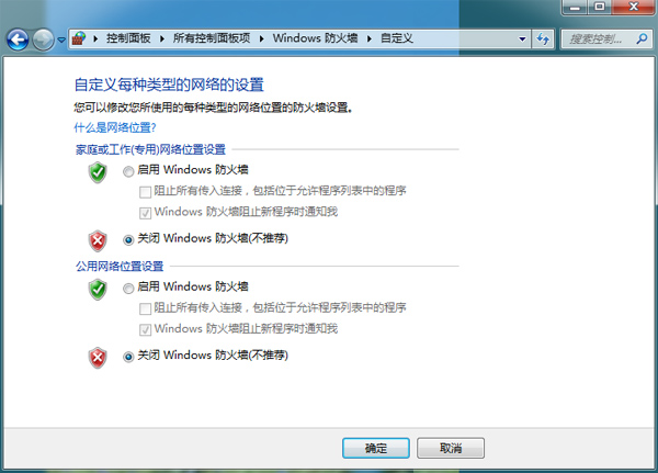 关闭防火墙:通过“控制面板”关闭“Windows Defender防火墙”。