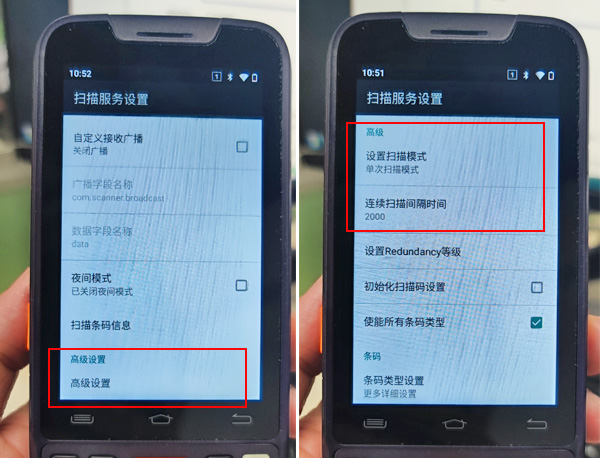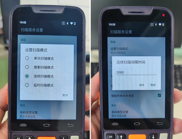 点击“设置扫描模式”,选择“连续扫描模式”,然后退出;点击“连续扫描间隔时间”,这里的时间单位是毫秒,可根据使用习惯设置间隔时间,一般设置1000-2000毫秒即可。做完以上两点,连续扫描即设置完成。