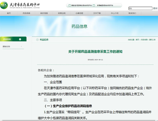 行业资讯 | 2024-09-20天津等地落实药品追溯码应用,配送企业应需实时上传追溯码VIEW MORE -